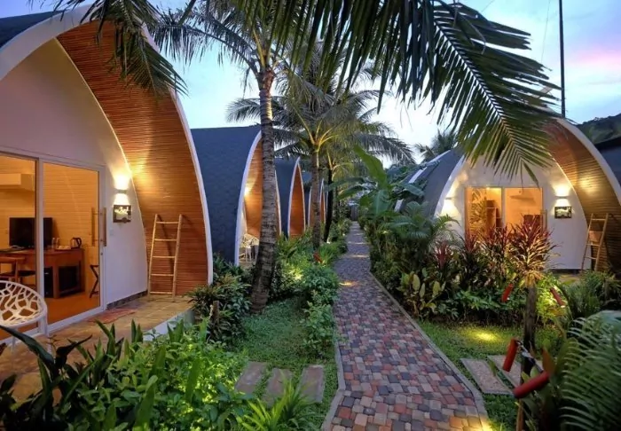 Varje litet hus har 1–2 separata och rymliga rum (minst 30 kvadratmeter) med egen ingång. Rummen har en liten balkong eller terrass och är inredda med skrivbord, luftfläkt, badrockar, tofflor, myggnät och ett badrum. Du kan låna hårtork i receptionen och det finns gratis wifi.