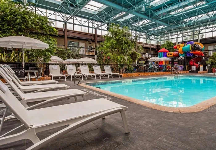 Hotellen har en inomhusinnergård som är ett riktigt paradis för barnfamiljer. Här finns både uppvärmd pool, två bubbelpooler, en inomhuslekplats och en golf-lounge med simulatorer.