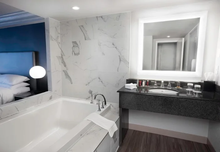 När du söker lugn eller vill unna dig något extra kan du besöka Burning Springs Spa och Thermal Pools i grannbyggnaden. Där får du tillgång till både inomhus- och utomhusvarma källor, en finsk bastu samt behandlingar som massage, ansiktsbehandlingar och kroppsinpackningar – en plats för fullständig avkoppling. Som gäst har du även tillgång till hotellets gym med moderna träningsmaskiner.