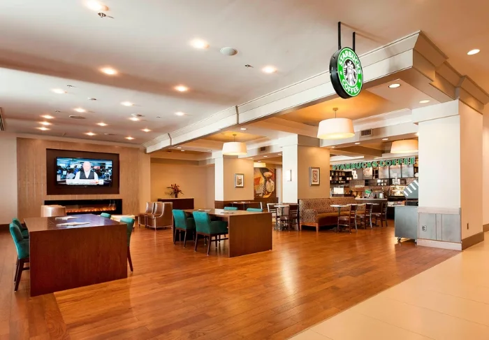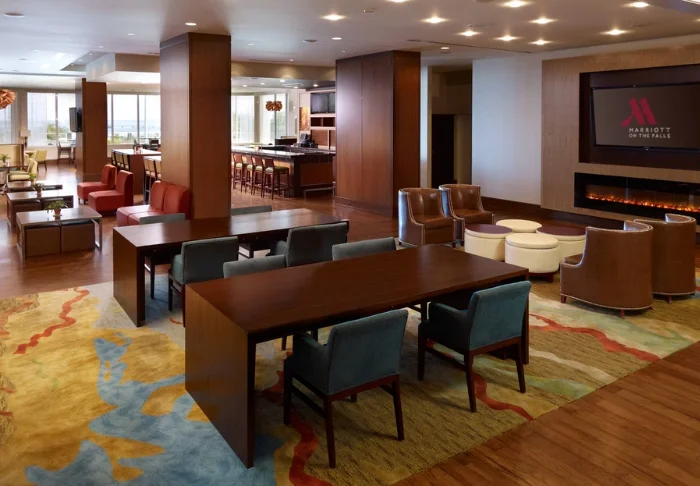 Hotellet erbjuder flera matalternativ (mot tillägg). Milestones on the Falls har en modern, globalt inspirerad meny och fantastisk utsikt över fallen. På Marriott Fallsview Café serveras frukostbuffé med både sött och salt, medan Great Room Lobby Lounge är en ljus och avslappnad plats att njuta av lättare rätter och drinkar. Dessutom finns en Starbucks i lobbyn – perfekt för en snabb kaffe- eller fikapaus.