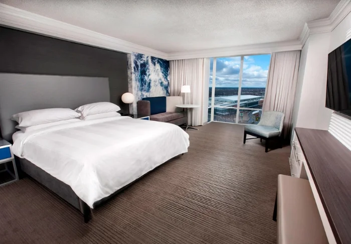 Drömmer du om att börja och avsluta dagen precis vid de majestätiska Niagara Falls, då bör du uppgradera till Niagara Falls Marriott on the Falls, som ligger i det eftertraktade Fallsview-området. Det här hotellet passar dig som vill få ut det mesta av ditt besök vid Niagara Falls, där naturen möter dig så snart du kliver ut från hotellet. Den magnifika utsikten släpps också in och kan njutas av från flera av hotellets många panoramafönster. Du har dessutom promenadavstånd till de populära båtturerna, den vackra parken Niagara Parks och områdets rika utbud av naturscener och upplevelser.