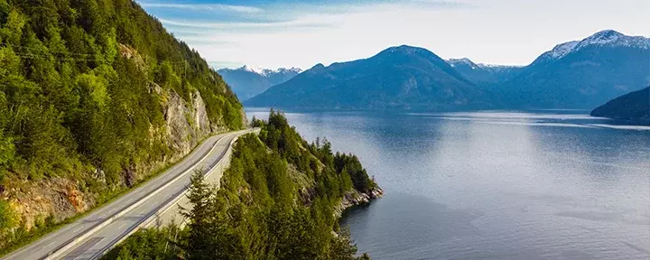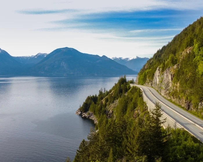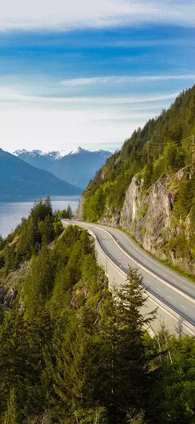 Även om du redan har kört på flera ikoniska vägar, så är dagens sträcka på knappt 1,5 timme inget undantag. Från Whistler kör du längs Highway 99 – även känd som ”Sea to Sky Highway”. Precis som namnet antyder möter du idag kontrasterna mellan hav och himmelhöga höjder, från Whistlers berg till djupa fjordar.