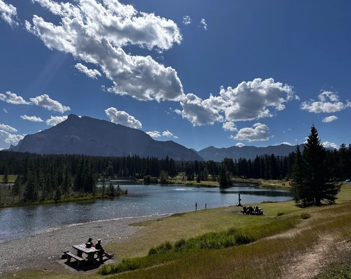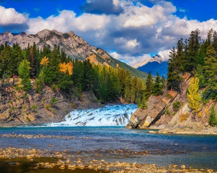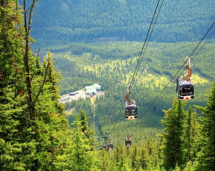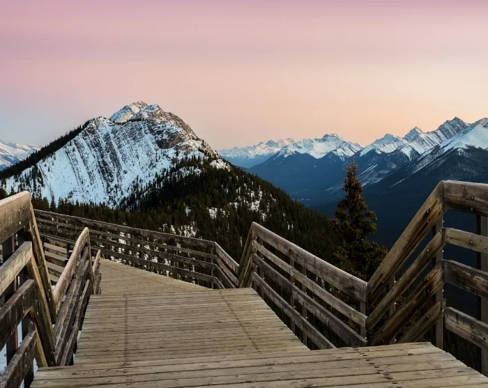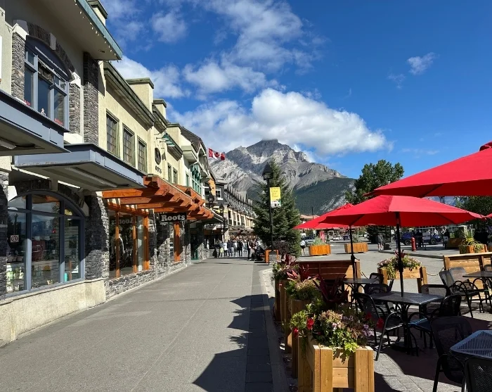 Banff är en charmig stad belägen i Bow Valley, mitt i Banff nationalpark. Även här rinner den kraftfulla Bow River genom staden, och vi rekommenderar varmt en promenad längs de välanlagda stigarna fram till stadens berömda vattenfall, Bow Falls. Du kan också åka upp i linbanan Banff Gondola, som på knappt åtta minuter tar dig 700 höjdmeter upp till toppen av Sulphur Mountain, där du får magnifik 360-graders utsikt över inte mindre än sex olika bergskedjor. Högst upp har du chansen att avnjuta något gott att dricka eller äta på Sky Bistro, där både menyn och utsikten är lika lockande.