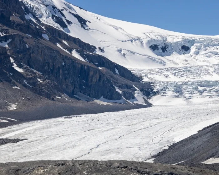 Resan fortsätter på en av världens vackraste vägar, Icefields Parkway. En bergsrutt genom Rocky Mountains otroliga glaciärlandskap. Du nöjer dig inte bara med att se glaciärer – du kommer också att röra vid dem. Med en terränggående buss förs du uppför Athabasca glaciären, där du kan röra vid och vandra på isen som består av 400 år gamla snöflingor.