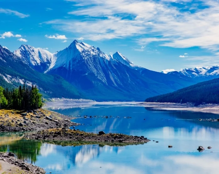 Bland parkens höjdpunkter finns den vackra Maligne Lake, känd för sitt azurblå vatten som omges av majestätiska bergstoppar och glaciärer. Sjön är mycket populär under sommarmånaderna, så vi rekommenderar att du besöker Maligne Lake tidigt på dagen. Om du tar bilen cirka 48 km från centrala Jasper ut till sjön kan du även stanna vid flera spännande platser längs vägen. Under färden får du chansen att upptäcka både Rocky Mountains djupaste ravin, Maligne Canyon, och den särpräglade Medicine Lake.