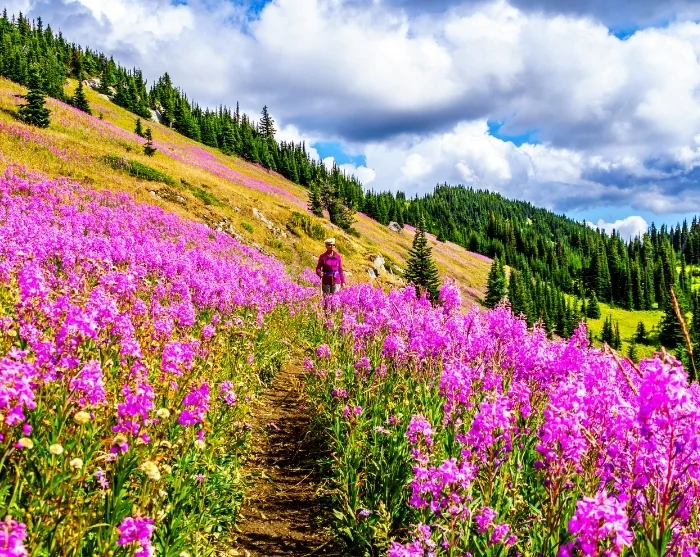 Parken är särskilt känd för sina mäktiga vattenfall, vulkankratrar och glaciärer, och du kan förvänta dig ett andlöst ögonblick när du står framför Kanadas fjärde högsta vattenfall, Helmcken Falls, som störtar 141 meter ner i en djup klyfta (cirka 45 minuter från Clearwater).