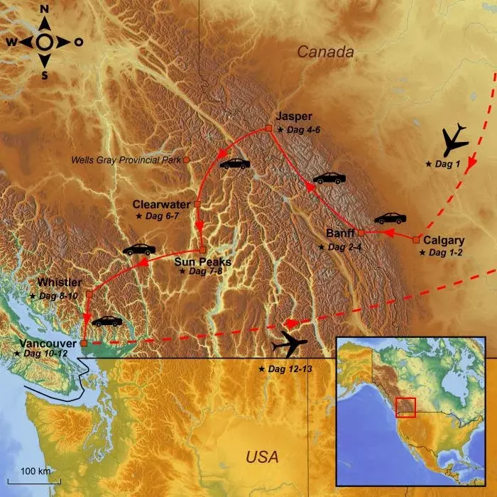 *Observera att du idag lämnar Alberta och kör in i provinsen British Columbia. Du passerar också in i en annan tidszon: British Columbia ligger en timme efter Alberta.