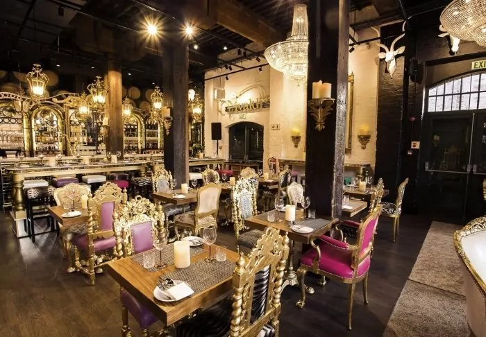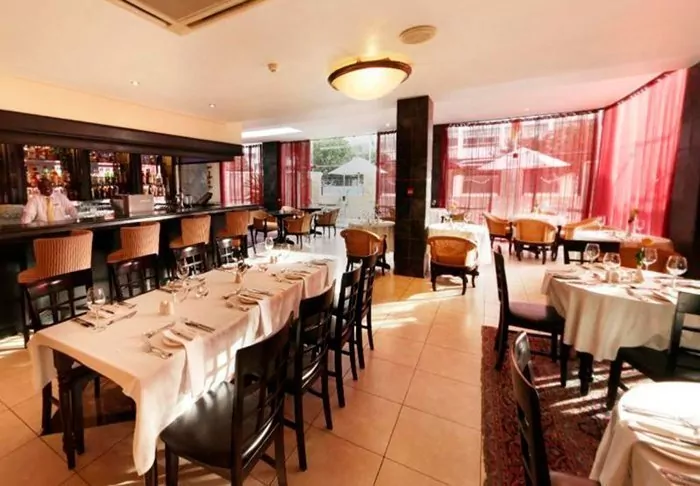 Frukost serveras i restaurangen, som också är öppen på kvällen – och medan rummen är eleganta och nästan kliniska i sin design, är inredningen i restaurangen överdådig. På helgerna kan du ha turen att få se lokala band som uppträder i restaurangen.