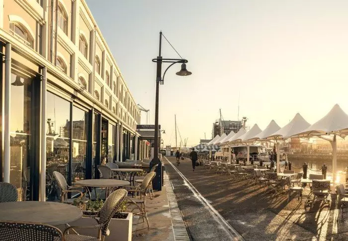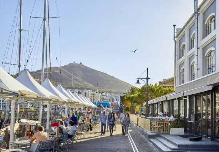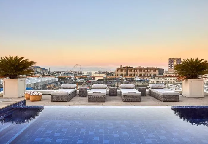 Spaavdelningen och poolen ligger på sin egen ö i hamnen och omges av en tropisk trädgård – mitt i staden. I loungen kan du njuta av en cocktail med utsikt över Taffelberget medan du väntar på ditt bord på Afrikas enda Nobu-restaurang – den är populär så boka bord i god tid.