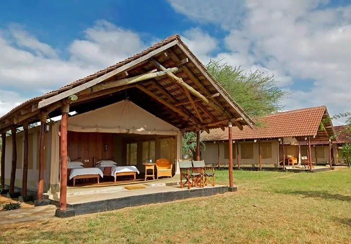 Ashnil Aruba Lodge ligger i hjärtat av Tsavo East National Park, nära Aruba-dammen som är byggd tvärs över floden Voi.