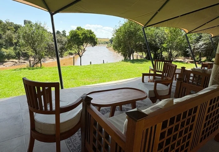 Föreställ dig att du ligger i en solstol på din egen stora träterrass utanför ditt tält i Masai Mara. Du kan höra hur flodhästarna ryker ihop vid Marafloden – samma flod som varje år är centrum för den stora vandringen och som detta läger ligger vid.