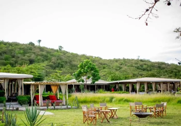 I de gemensamma utrymmena hittar du både mat- och loungetält, som är trivsamt inredda med mjuka fåtöljer, mattor och kuddar i massajernas vackra färger. Det finns två bålområden utomhus varifrån du kan se den vackra solnedgången med en svalkande drink i handen.