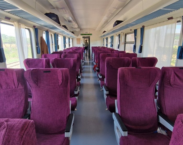 De tåg vi använder i Kenya är moderna och har bekväma säten, toaletter samt möjlighet att köpa drycker och snacks under resan.