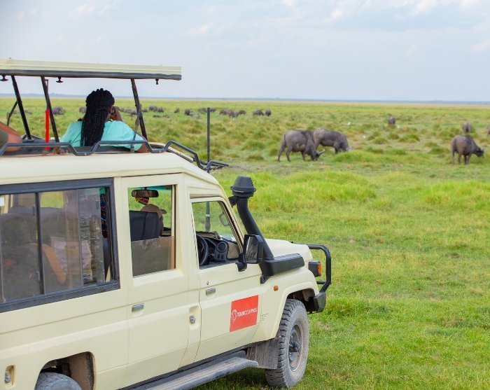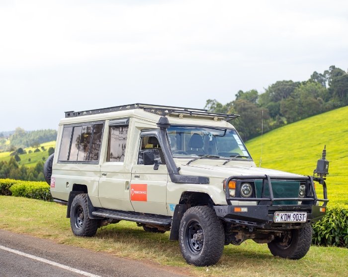 Det finns möjlighet att öppna taket på bilarna under safarin så att det blir lättare att se de spännande djuren. Upp till 5–7 personer får plats i en Land Cruiser.