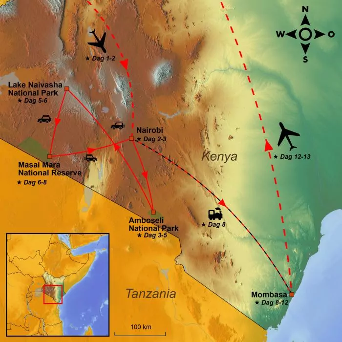 På den här resan upplever du Kenyas största höjdpunkter: Amboseli, Lake Naivasha och Masai Mara. Resan avslutas med en avkopplande semester på den exotiska ön Zanzibar.
