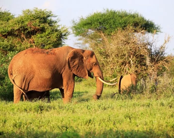 I Tsavo East är jorden klarröd, vilket ger djuren ett ganska distinkt rödaktigt utseende. Du kan lika gärna vänja dig vid den röda jorden för du kommer att möta den igen när du kommer till Madagaskar.