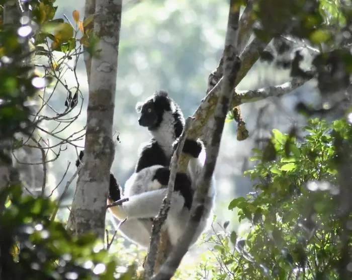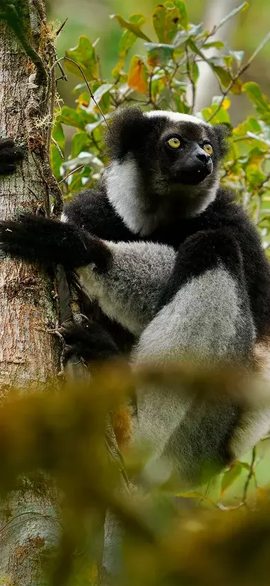 Förutom din guide åtföljs du ofta också av en “spårare”. Spåraren går längst fram och lokaliserar Indri-lemurfamiljerna, och därefter tar ni er fram genom skogen för att se dem. De brukar sitta högt upp i träden, där de har tillbringat natten. Ta gärna med dig en kikare så att du kan se deras ludna armar klamra sig fast vid grenarna med nästan människoliknande händer.