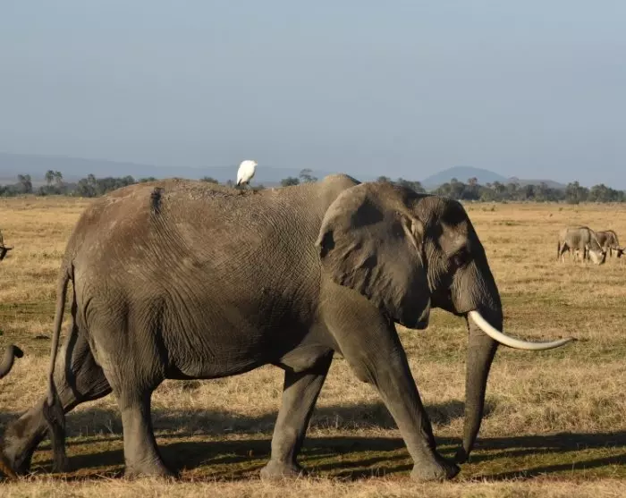 Den glesa vegetationen i Amboseli gör det lättare att se de vilda djuren, och förutom elefanter kommer du att kunna se massor av zebror, antiloper, giraffer – och förmodligen också lejon.