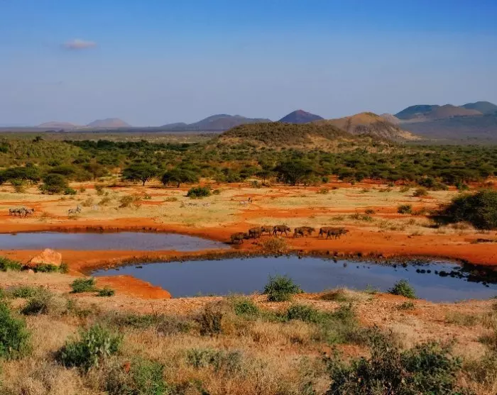 Om Amboseli är liten är Tsavo stor. Det är Kenyas största nationalpark. Den består av delarna Tsavo East och Tsavo West, och du kommer att besöka dem båda på denna resa. Du kan se fram emot att få uppleva rödaktiga elefanter i torra Tsavo East och frodiga landskap och källor i Tsavo West.