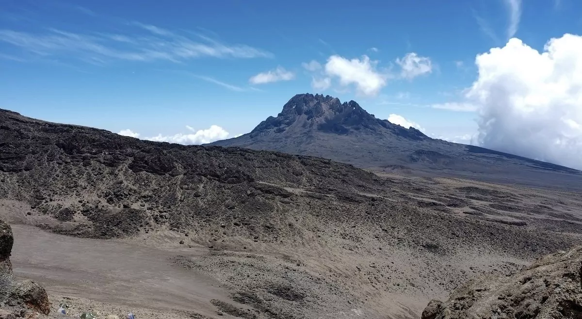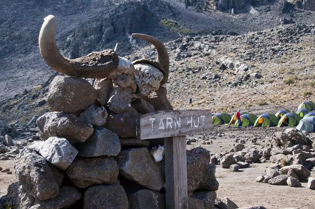Dagens sträcka går till Mawenzi Tarn Hut. Efter en kort men brant stigning uppför gräsklädda bergssluttningar belönas du med en fantastisk panoramautsikt. Hedlandskapet ersätts av ett klippigt högland som består av stora och små vulkanstenar, som vittnar om den forntida vulkaniska aktiviteten. Efter ytterligare ett par timmars vandring når du dagens övernattningsställe, som har ett spektakulärt läge i en dal under Mawenzis skyhöga toppar.