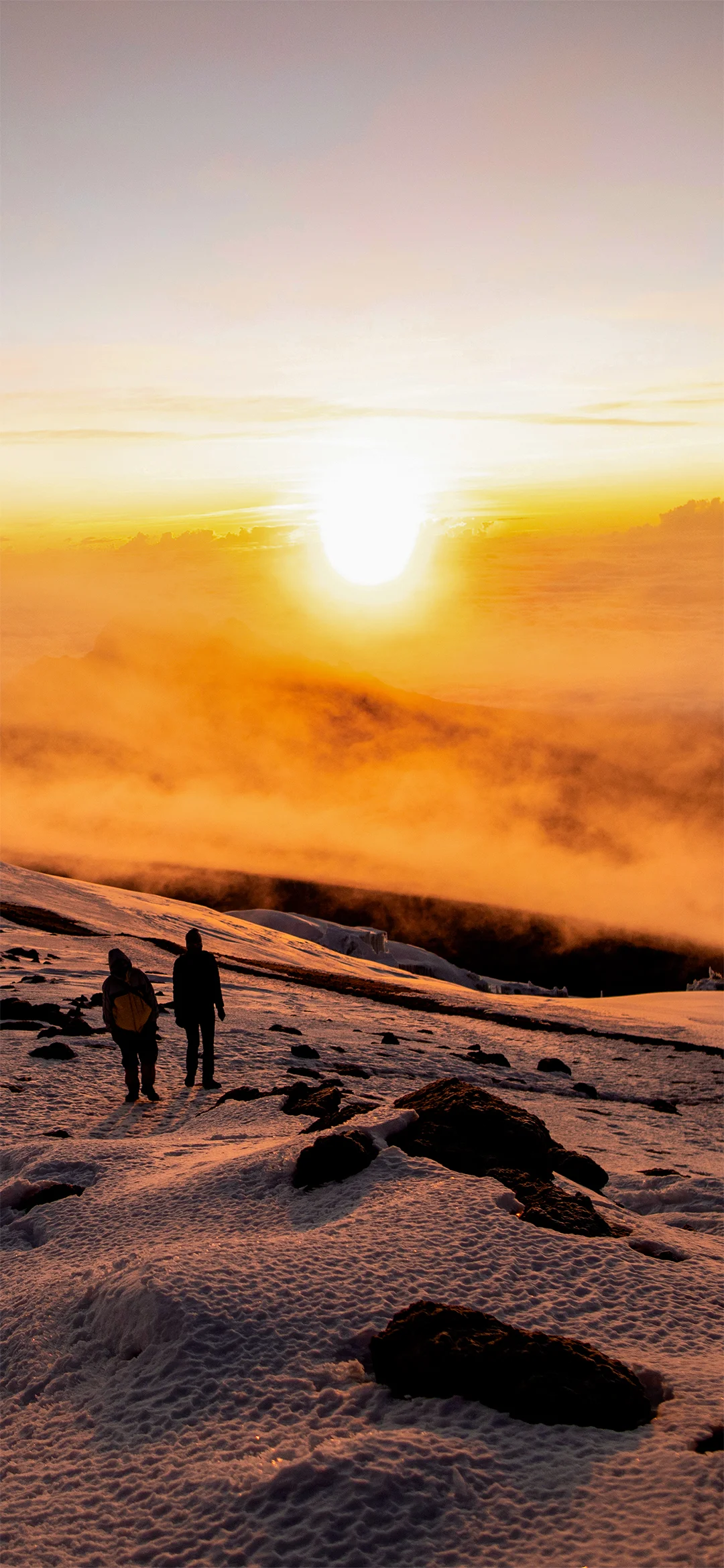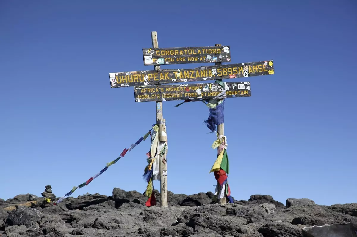 Du går upp kring midnatt och efter en snack går vandringen ut i natten. Den svåra terrängen med lösa stenar tar många timmar och är den största utmaningen för de flesta under resan. Målet är att vara framme vid Gilman’s Point i gryningen, så att du kan nå Kibos högsta punkt Uhuru strax efter soluppgången. Du gör ett kort stopp vid Gilman’s Point där utsikten är imponerande. Du fortsätter längs kraterkanten fram till Uhuru Peak och den sista sträckan är en jämn stigning. Beroende på årstiden kan det vara snö den sista biten till Uhuru Peak som är ditt stora mål, toppen av Kilimanjaro och toppen av Afrika. När du når toppen på 5 895 meter över havet kan du klappa dig själv på axeln, njuta av den fantastiska utsikten och ta en selfie vid Uhuru Peak-skylten för att föreviga minnet.