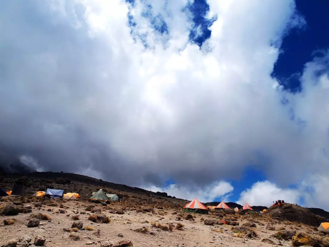 I dag vandrar du genom månlandskapet ” The Saddle”, som förbinder Mawenzi och Kibo Du anländer till Kibo Huts, som ligger vid foten av Kibos kratervägg. Efter ankomst förbereder du din utrustning och tar fram varma kläder inför vandringen till toppen. Fyll på med dricksvatten i en termos, så att det inte fryser till is. Använd resten av dagen till att koppla av, och se till att lägga dig tidigt för att ladda batterierna inför Kilimanjaros ultimata utmaning.