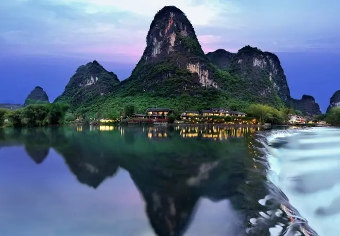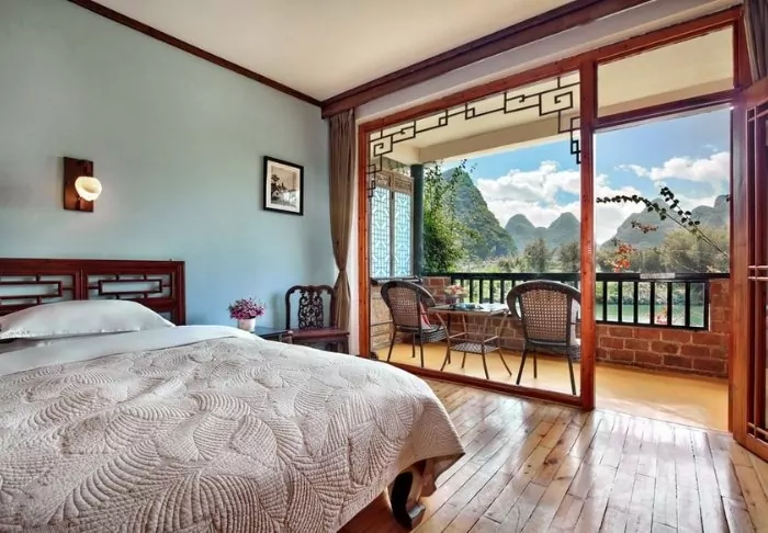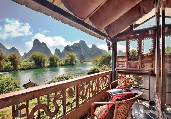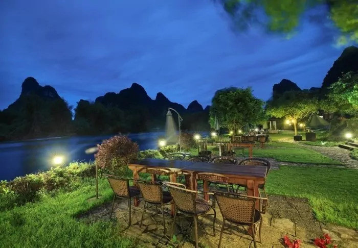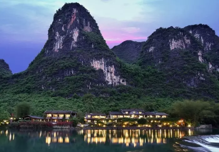 Strax utanför Yangshuo hittar du det fridfulla Yangshuo Mountain Retreat i vackra omgivningar bland frodiga träd och gröna kalkstensberg vid Yulong-flodens strand. Här kan du verkligen hitta ditt inre lugn medan du tar in den praktfulla naturen.