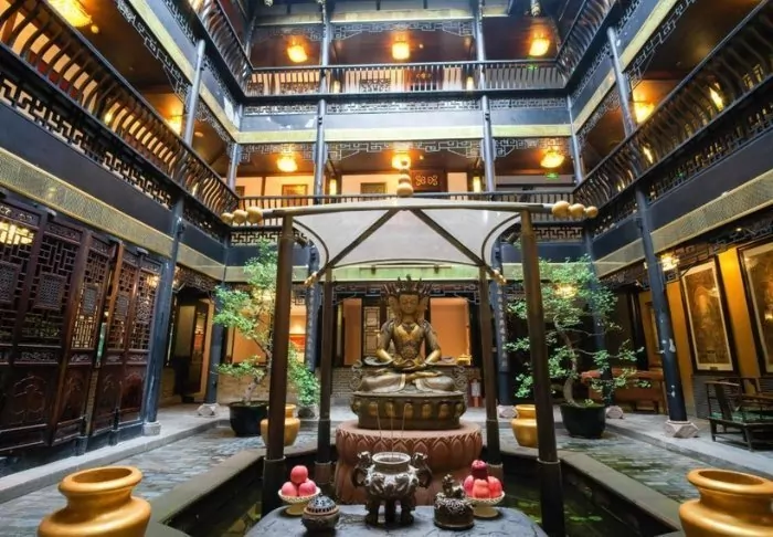 Buddha Zen Hotel är ett charmigt hotell i traditionell kinesisk stil som ligger i hjärtat av Chengdus gamla stadsdel. Hotellet ligger nära det historiska Wenshuklostret och är omgivet av pittoreska gator med traditionella tehus och små, charmiga butiker, som tillsammans skapar en autentisk atmosfär som är svår att hitta någon annanstans.