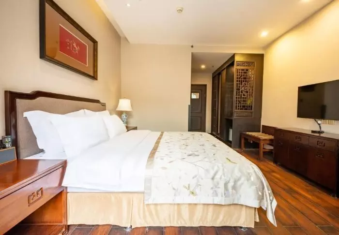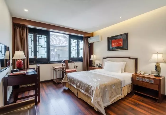 Rummen är elegant inredda i kinesisk stil med trämöbler och fina detaljer. Alla rum är utrustade med moderna faciliteter som luftkonditionering, Wi-Fi, säkerhetsbox, te- och kaffekokare och en platt-TV. Badrummen är moderna och nyrenoverade. Här hittar du morgonrock, tofflor, hårtork och diverse toalettartiklar.