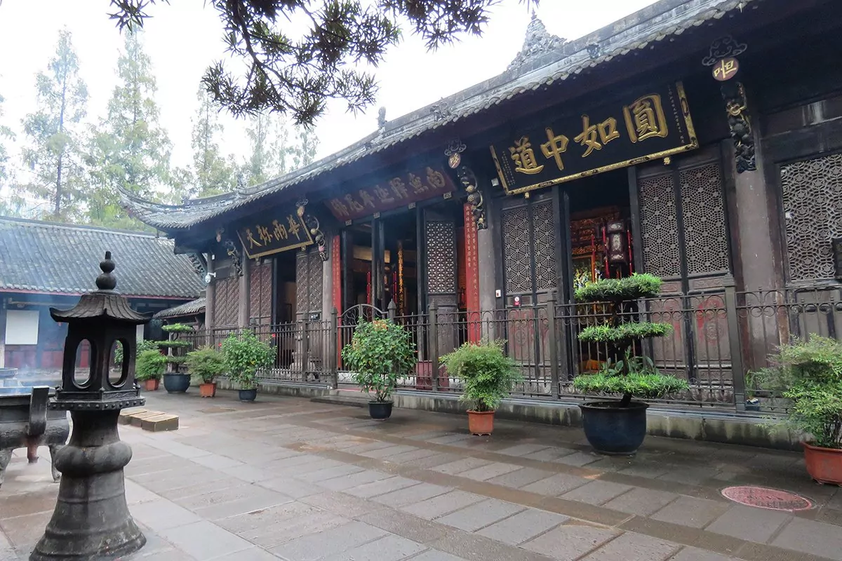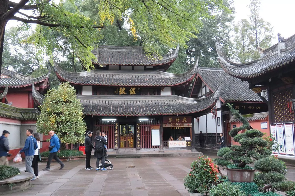 Utflykten fortsätter sedan till Wenshutemplet. Templet har en spännande historia som går mer än tusen år tillbaka, och det har bidragit till att sprida buddismen i Chengdu. Wenshu, som tidigare hette Xinxiang, brändes ner i samband med krigen i slutet av Ming-dynastin och låg i ruiner fram tills 1681, under Qing-dynastin, då en buddistisk munk kom och byggde en liten hydda mellan två träd där han kunde bo och utöva sina religiösa ritualer. Munken hette Cidu och han bodde i flera år i hyddan och levde ett asketiskt liv fram till sin död. Legenden säger att när Cidu dog kremerades munken, och när röken steg formade den bilder av Wenshu, som är det kinesiska namnet för visdomens bodhisattva Manjushri. Folk betraktade därför Cidu som reinkarnationen av Wenshu. Renoveringen och återuppbyggnaden av templet började 1697 och det stod klart 1706, då templet även fick sitt nuvarande namn. Wenshutemplet är i dag ett av de vackraste och mest välbevarade buddistiska templen i Kina och där bor 80 munkar.