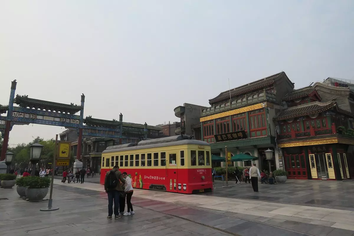 Från hotellet går du till den 840 meter långa shoppinggatan Dashilan, som ligger söder om Himmelska fridens torg. Dashilan grundades under Ming-dynastin för över 600 år sedan men började blomstra på allvar först under Qing-dynastin. Inför OS 2008 genomgick gatan en omfattande renovering, där man behöll den traditionella stilen från Ming- och Qing-dynastierna. I Dashilans norra ände står ett av gatans kännetecken: den gamla spårvagnen i rött och gult. Härifrån fortsätter du till Beijings berömda samlingspunkt, Himmelska fridens torg.