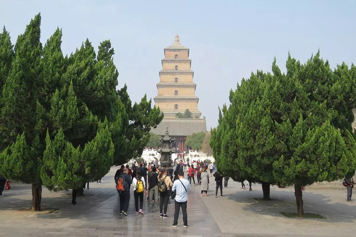 Efter besöket körs du tillbaka till Xi’an, där du besöker Vildgåspagoden, som är med på Unescos världsarvslista och är en helig plats för buddister. Pagoden uppfördes år 652 som förvaringsplats för värdefulla buddistiska skrifter, som munken Xuanzang förde med sig hem från en resa i Indien. Det var härifrån som buddismen på allvar spred sig till resten av Kina och den är därför en vallfärdsort för många av Kinas buddister. Pagoden är en del av tempelkomplexet Daci’en, där 300 munkar bodde under Tang-dynastin. I dag bor det omkring 20 verksamma munkar här. Guiden kommer att berätta historien om hur pagoden fick sitt märkliga namn.