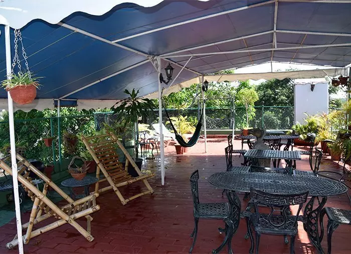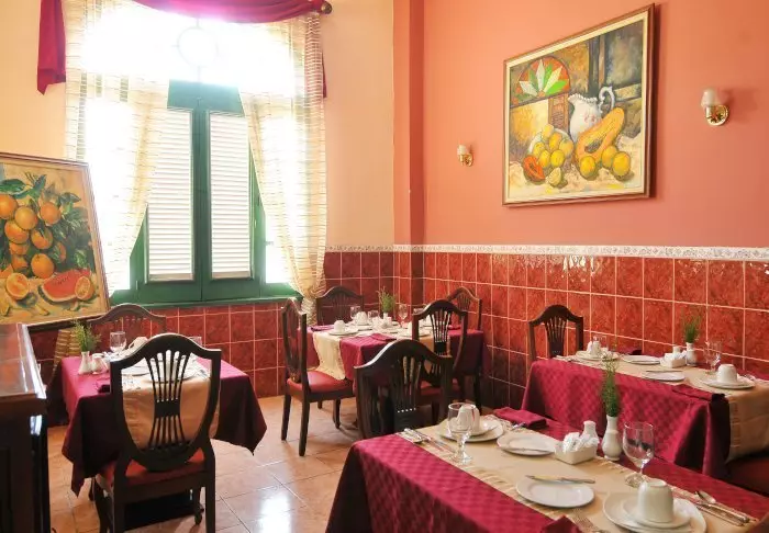 Det finns trivsamma allmänna utrymmen, där du kan sitta och koppla av. Dessutom finns en liten restaurang, som serverar både internationella och traditionella kubanska rätter. Det är också här den inkluderade frukosten serveras.