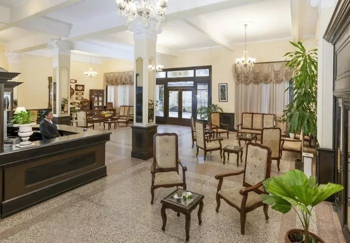 La Unión byggdes 1869 i nyklassisk stil, och är därmed ett av Cienfuegos äldsta och charmigaste hotell.
