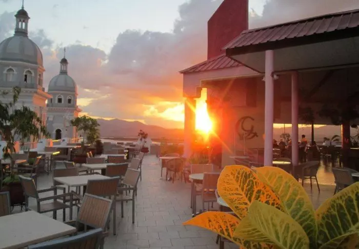 I restaurangen kan du njuta av både kreolska och internationella rätter. Härifrån har du dessutom en fantastisk utsikt över staden och bergen.