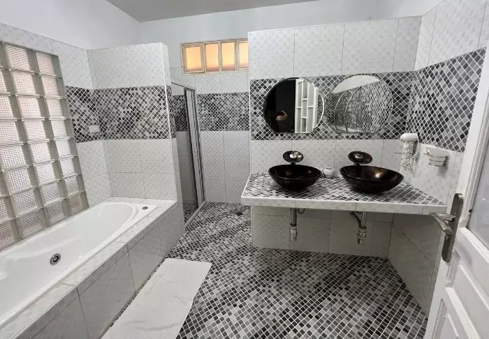 De 72 rummen har aircondition, TV, telefon och safetybox. Der finns dessutom swimmingpool samt bar och restaurang, där det serveras internationella rätter.