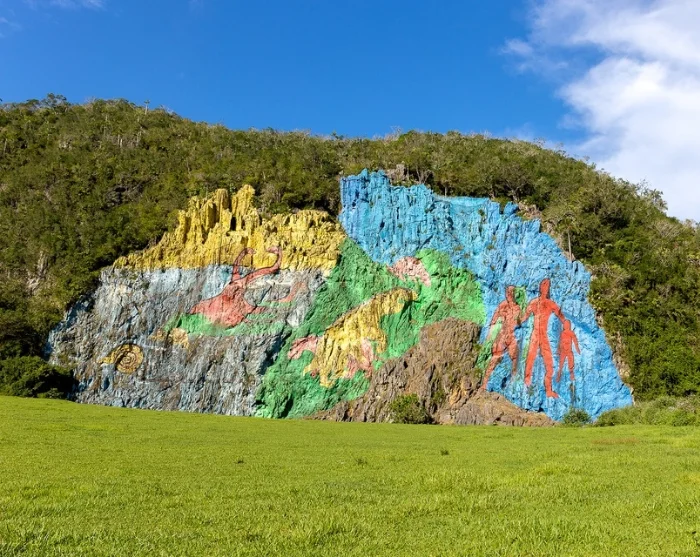 En bit utanför Viñales hittar du en av stadens stoltheter, den enorma väggmålningen Mural de la prehistoria, som symboliserar människans evolution. Den är målad av den lokala konstnären Leovigildo González.