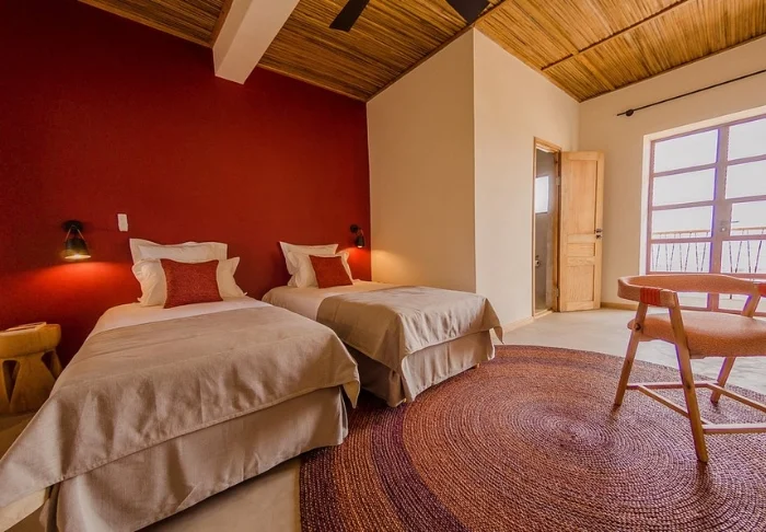 Rummen är stora och designen för tankarna till nordisk stil: möbler i ljust trä, ljusa betonggolv, stora sisalmattor samt kuddar och gardiner i mjuka men färgstarka tyger. Det finns inget kylskåp på rummet, och inte heller någon TV. Däremot finns utmärkt wifi överallt. Nattetemperaturen i Antananarivo är oftast rätt behaglig, men om det blir varmt finns det en takfläkt.