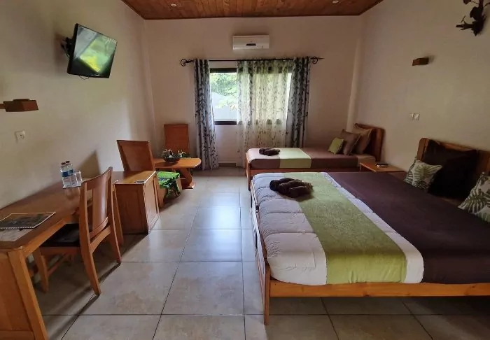 Det finns 22 rum av olika storlek. Alla rum är dock rymliga. De är möblerade med massiva trämöbler med färgade kuddar, och det finns ofta också trä på väggarna, vilket livas upp med färgglada gardiner, så att det som annars skulle kunna upplevas som mörkt istället är charmigt. Alla rum har luftkonditionering, värdeskåp, minibar, TV och Wi-Fi (i den mån det fungerar).
