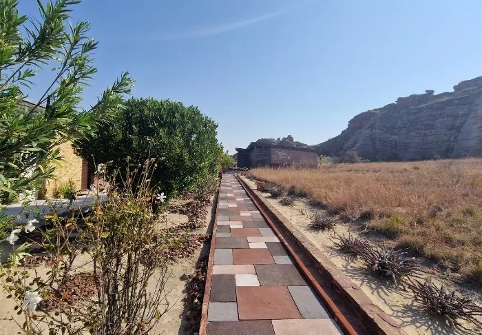 Koppla av vid den mysiga poolen, njut av en massage i spa-avdelningen eller gå på en kort vandring i området – kanske med ett sista dopp i platsens egen oasdamm.