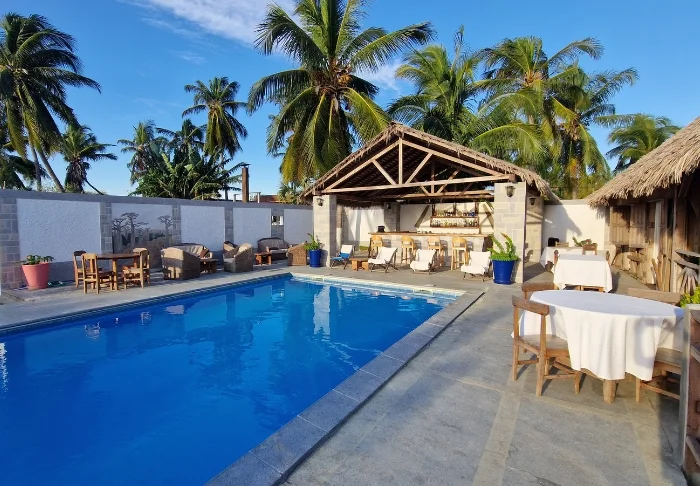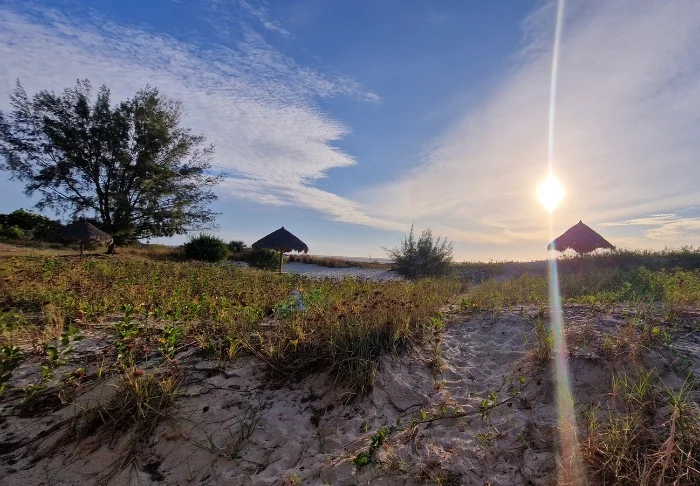 La Renalas 13 bungalower har ett förstklassigt läge vid den breda stranden i Morondava.