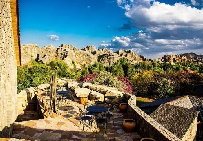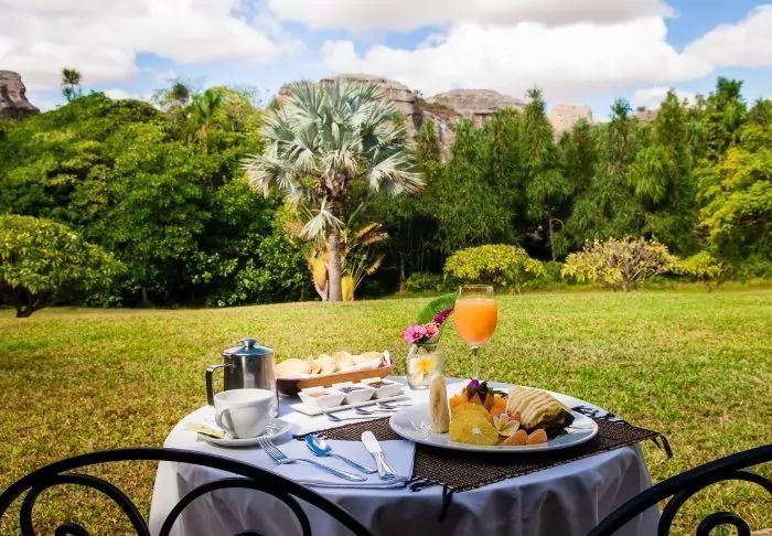 Liksom sitt systerhotell Jardin du Roy är Relais de la Reine byggd av granit, som smälter in väl med det omgivande landskapet i Isalo.