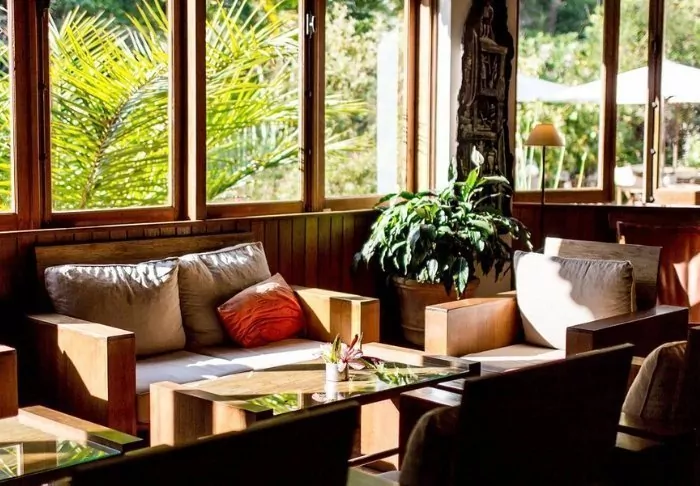 Lodgen är däremot definitivt värd ett besök i sig. Det finns 28 bungalows, enkelt inredda med en säng med myggnät, takfläkt, värdeskåp och minibar. Den stora attraktionen är lodgens läge mitt i regnskogen, och i synnerhet restaurangen, som har en veranda byggd över en liten sjö.