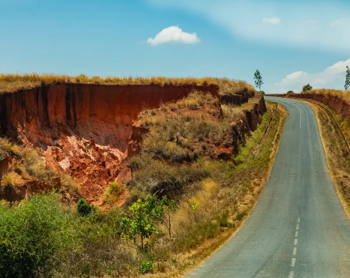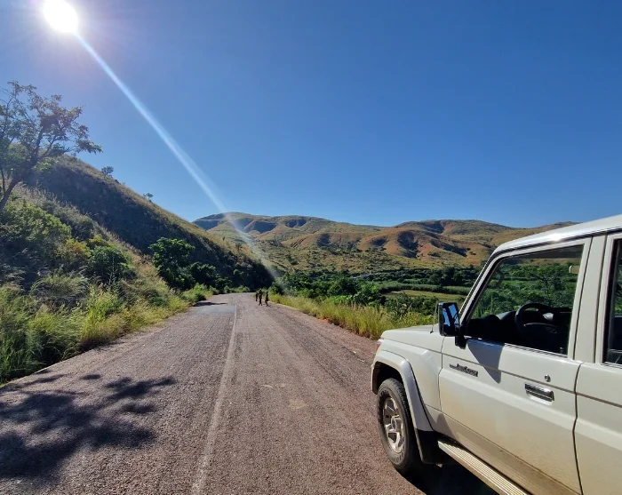 Från Antsirabe går färden västerut, genom små byar och ett böljande landskap med gröna kullar och öppna vyer. Efter regnperioden är allt friskt och frodigt – på vissa platser nästan som på Irland – men när torkan tar vid skiftar kullarna färg till gyllenbruna toner. Vi kan lika gärna vara ärliga och säga att vägen inte är särskilt bra… Därför går det ganska långsamt, men det ger dig fina möjligheter att njuta av det omväxlande landskapet och alla de små samhällen du passerar. Bilen är förstås anpassad efter vägförhållandena.