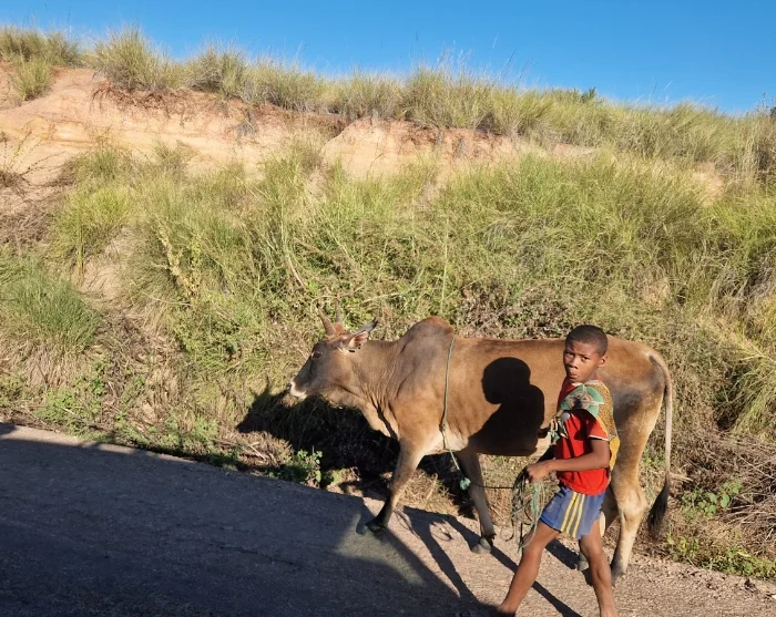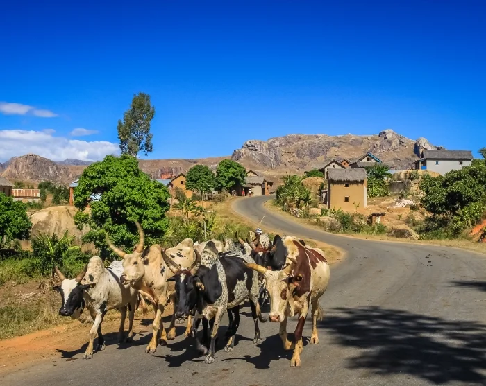 Överallt ser du zebu. De liknar de kännetecknande indiska korna med sin puckel på nacken, men zebun är inte helig på samma sätt som i Indien. På Madagaskar äter man gärna zebu, och det smakar fantastiskt gott.