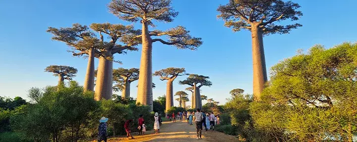Efter en äkta roadtrip genom Madagaskars ständigt skiftande landskap väntar ytterligare en sorts träd – de uråldriga och mäktiga baobabträden vid Morondava.
