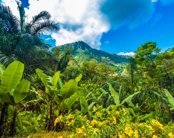Här finns inslag av Bali och Indien, som då och då möter Afrika, och där allt har smält samman med både Costa Rica och Australien. Landskapet är fantastiskt och mycket omväxlande.