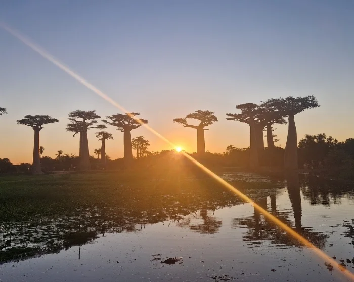 På vägen tillbaka mot Morondava passerar du återigen de vackra baobabträden – kanske har du även turen att få uppleva ytterligare en magisk solnedgång.