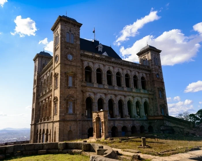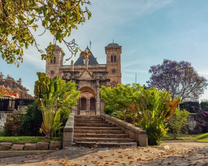 Palatset brann för några år sedan men har nu återuppbyggts, och den guidade rundvandringen ger en fascinerande inblick i Madagaskars historia.