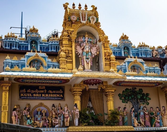 Ni kommer sedan att besöka Sri Kandaswamy Temple, som byggdes i början av 1900-talet och är tillägnat Lord Murugan. Templet är känt för sin imponerande arkitektur, som kombinerar traditionell sydindisk stil med färgglada och detaljerade dekorationer. Templet är en fridfull och andlig plats som ger dig en ordentlig inblick i hinduismens traditioner och rutiner, och om du vill kan du delta i en bön.